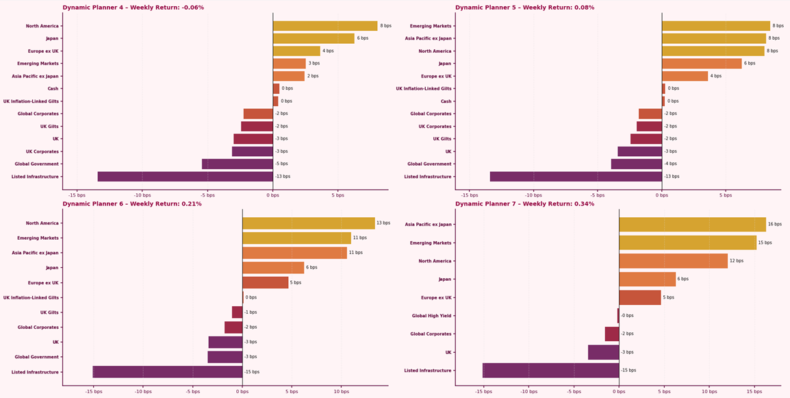 Each week Abhimanyu Chatterjee, Chief Investment Strategist at Dynamic Planner provides a clear and concise overview of how our Benchmark Allocations performed, its key drivers and trends along with notable movements within the portfolio. Designed to support you and keep you informed of how our portfolios have been performing and providing information you can discuss with your clients.