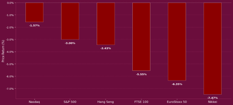 It would be unwise, however, to read UK Gilt yields purely as a geopolitical signal: the UK sits at the conjunction of two structural faultlines — dependence on oil and gas imports from the Middle East and a persistently weak growth backdrop. Equity markets have, predictably, moved lower, as can be seen in Figure 2, with the notable feature that Japanese and European markets have declined by larger amounts than US equities — a direct consequence of their greater reliance on Middle Eastern oil flows relative to the US, which has materially increased its domestic production in recent years.