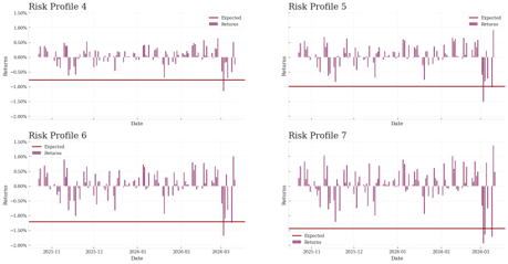 We have also observed VaR breaches in our daily monitoring, with a maximum of three daily breaches recorded in the Dynamic Planner 7 allocations.