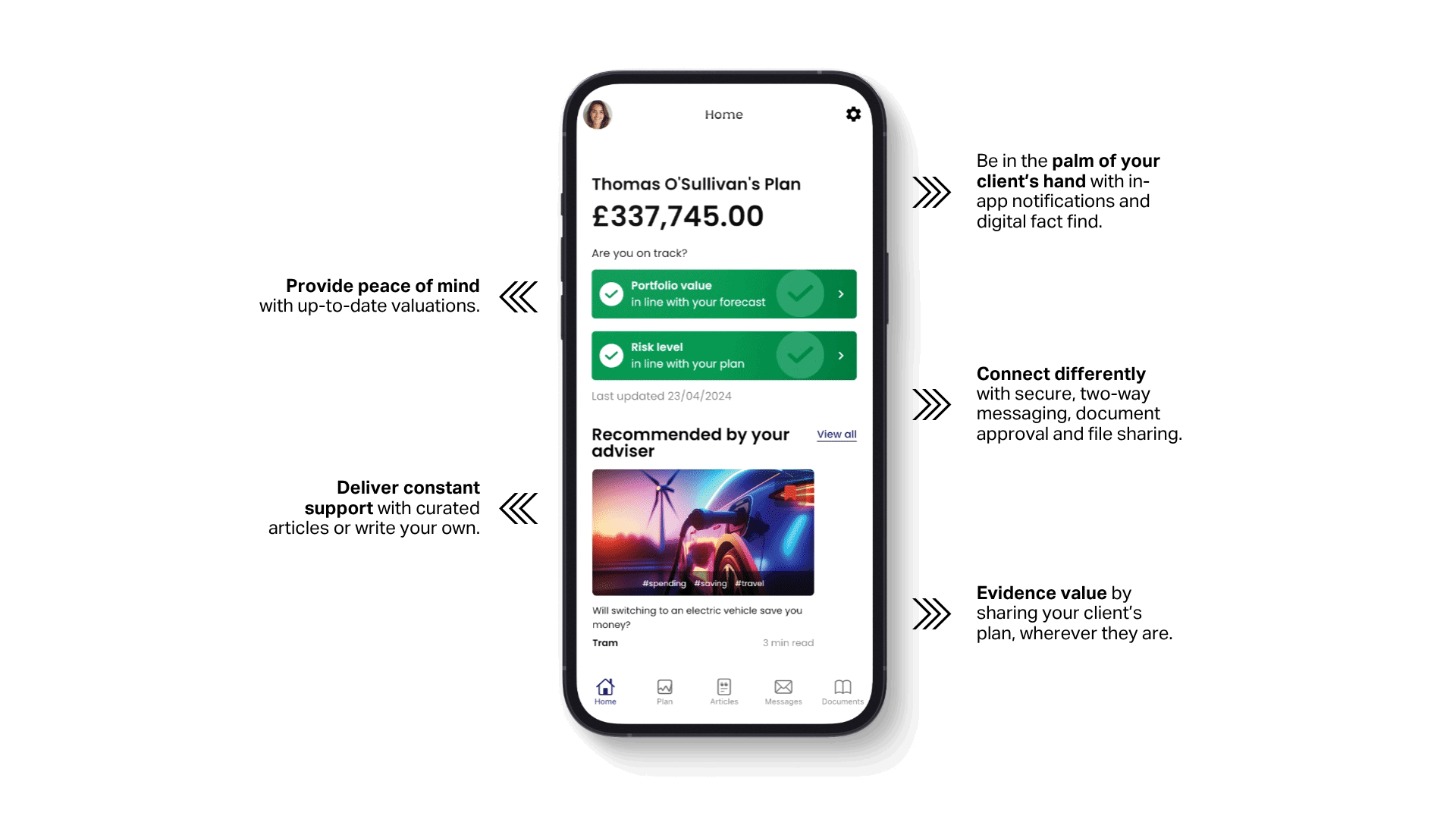 The FCA wants clear communications, timely support and proof that every client gets fair value. You want what’s best for your client. Tram brings both together. Clients get a calm place to check their plan and message you when it suits them. You get a clean record of what was shared, when it was seen and how reviews were delivered.